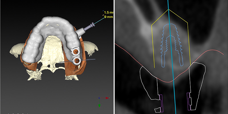 埋入方向、深さ等のシミュレーションを行うことで最適な形態、表面性状のインプラントを選択します。また、必要な場合はサージカルガイドを作製し、より安全で適切な治療を行うことが可能となります。