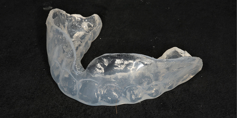 睡眠時無呼吸症候群(SAS)をマウスピースで治療するケースもあります。スリープスプリントとも言われています。下あごを上あごよりも前方に出すように固定させることで上気道を広く保ち、いびきや無呼吸の発生を防ぐ治療方法です。顎に対する負担や効果を見ながら、かみ合わせの専門家である補綴専門医がマウスピースを作成していきます。症状に対する適応の判断、治療効果に対する評価が必要なため、(SAS)専門医とタイアップして治療を進めていきます。